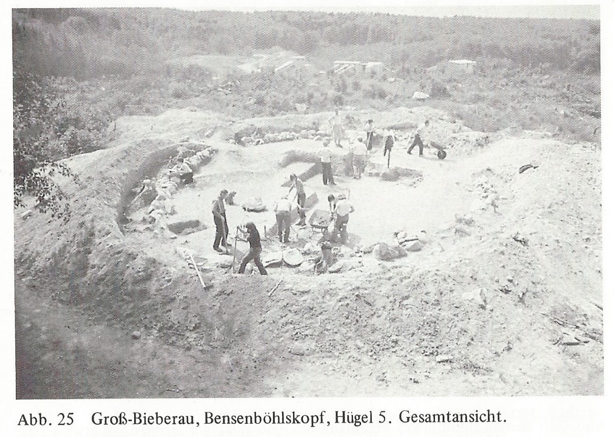 Durch die fortschreitende Ausdehnung des Steinbruchs drohte deren Zerstörung. Ende der 1960er und Anfang der 1970er Jahre konnten sie durch archäologische Notgrabungen erfasst und dokumentiert werden, bevor die Schwerindustrie diesen Bereich schluckte. Durchgeführt wurden die Untersuchungen vom Direktor des Dieburger Museums Walter Boß, zusammen mit archäologie-interessierten Helfern der Archäologischen und Volkskundlichen Arbeitsgemeinschaft Dieburg e.V. (AVA). Die dabei erlangten Befunde liefern der Archäologie bis heute weitreichende Erkenntnisse und werfen gleichermaßen Fragen auf.